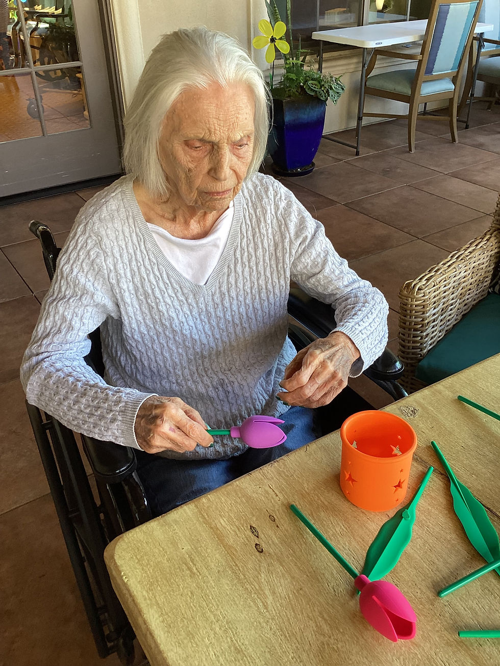 One afternoon, the care community’s activity coordinator approached Emily with something new: a small bucket filled with colorful silicone pieces. “They’re called Geri-Gadgets®,” she said. “They might give her something to focus on.”